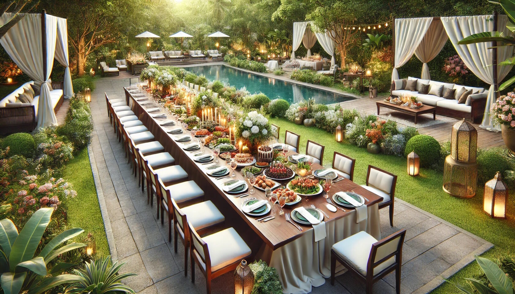 - Освещение: особенно важно для вечерних мероприятий, используйте гирлянды, фонари и свечи.
